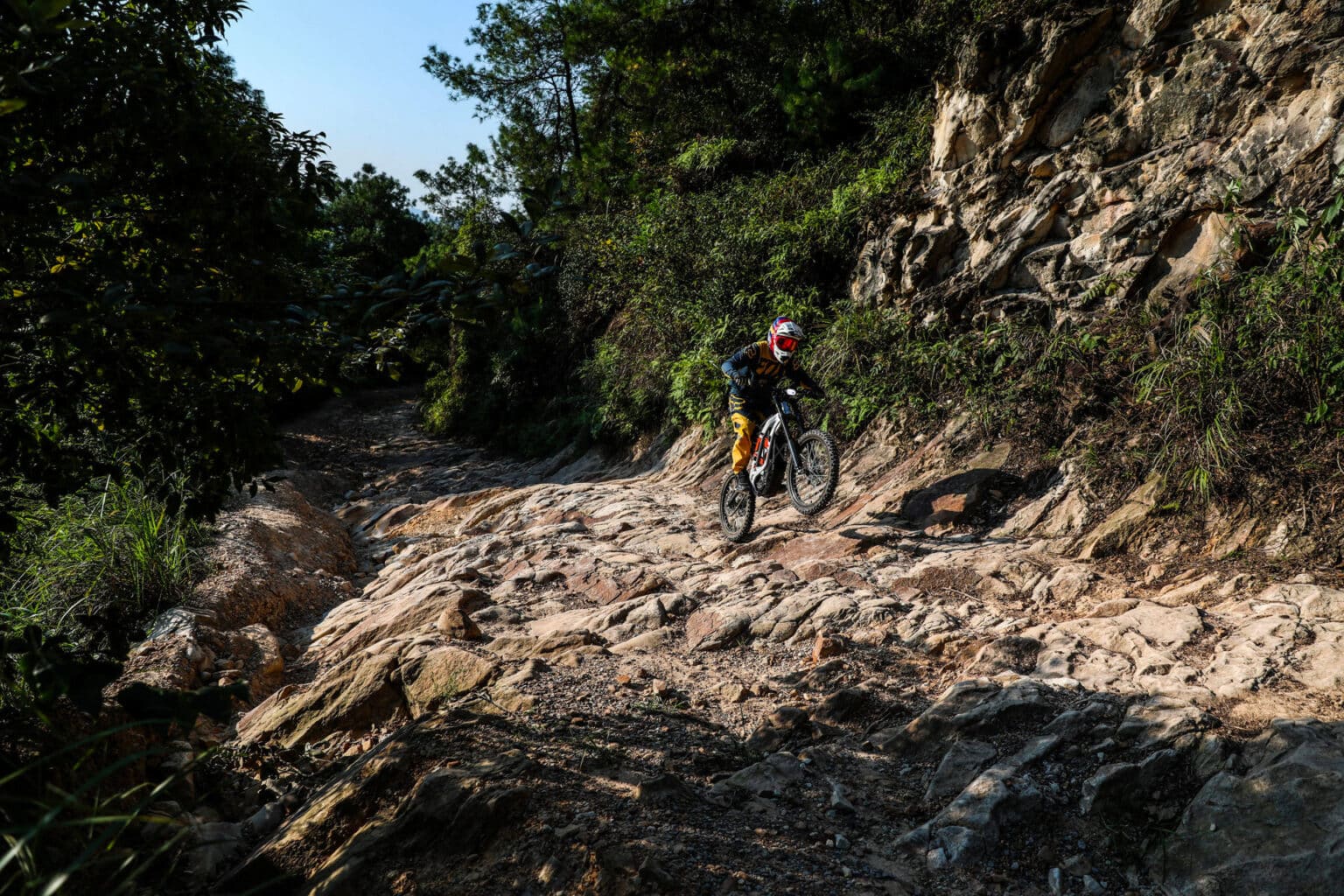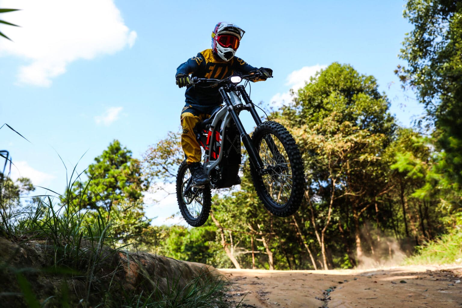 60V e mais de 6kW de potência de pico de uma bateria removível Panasonic de íon de lítio. Moldura de liga leve forjada combinada com componentes hi-spec, peso total de apenas 56 kg. 4 Freios a disco hidráulicos de pistão dianteiro e traseiro. Painel LCD com ponto de carregador USB. Destinado a jovens a adultos, com uma capacidade de escalada superior a 45° oferece horas de diversão quase silenciosa com um alcance de 50-70 km por carga, dependendo do modo. Velocidade máxima 45 mph +, recarga rápida 4 horas.